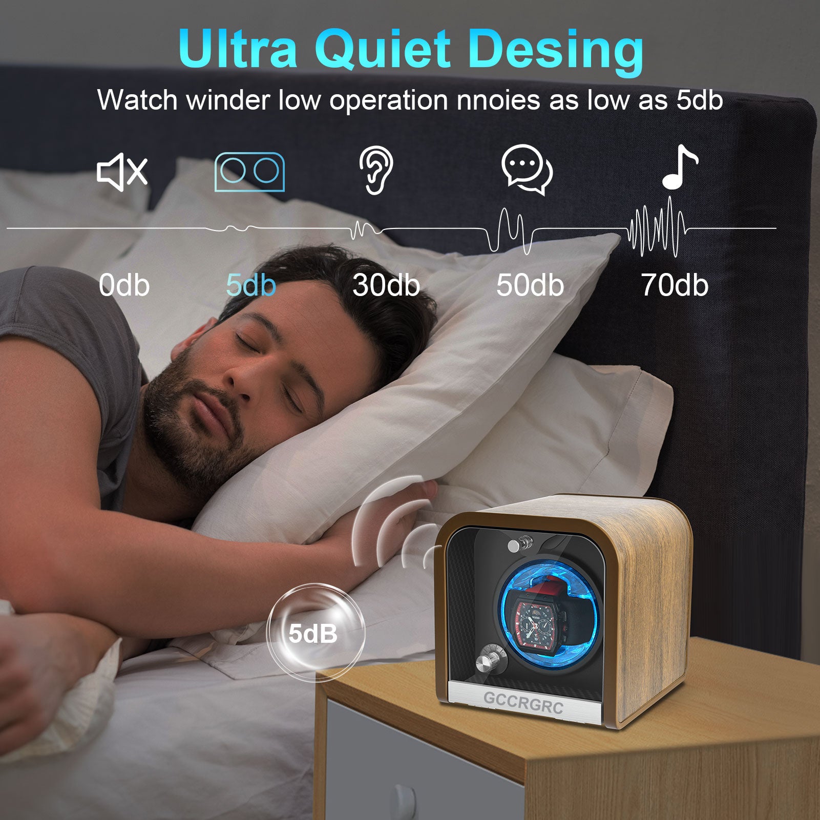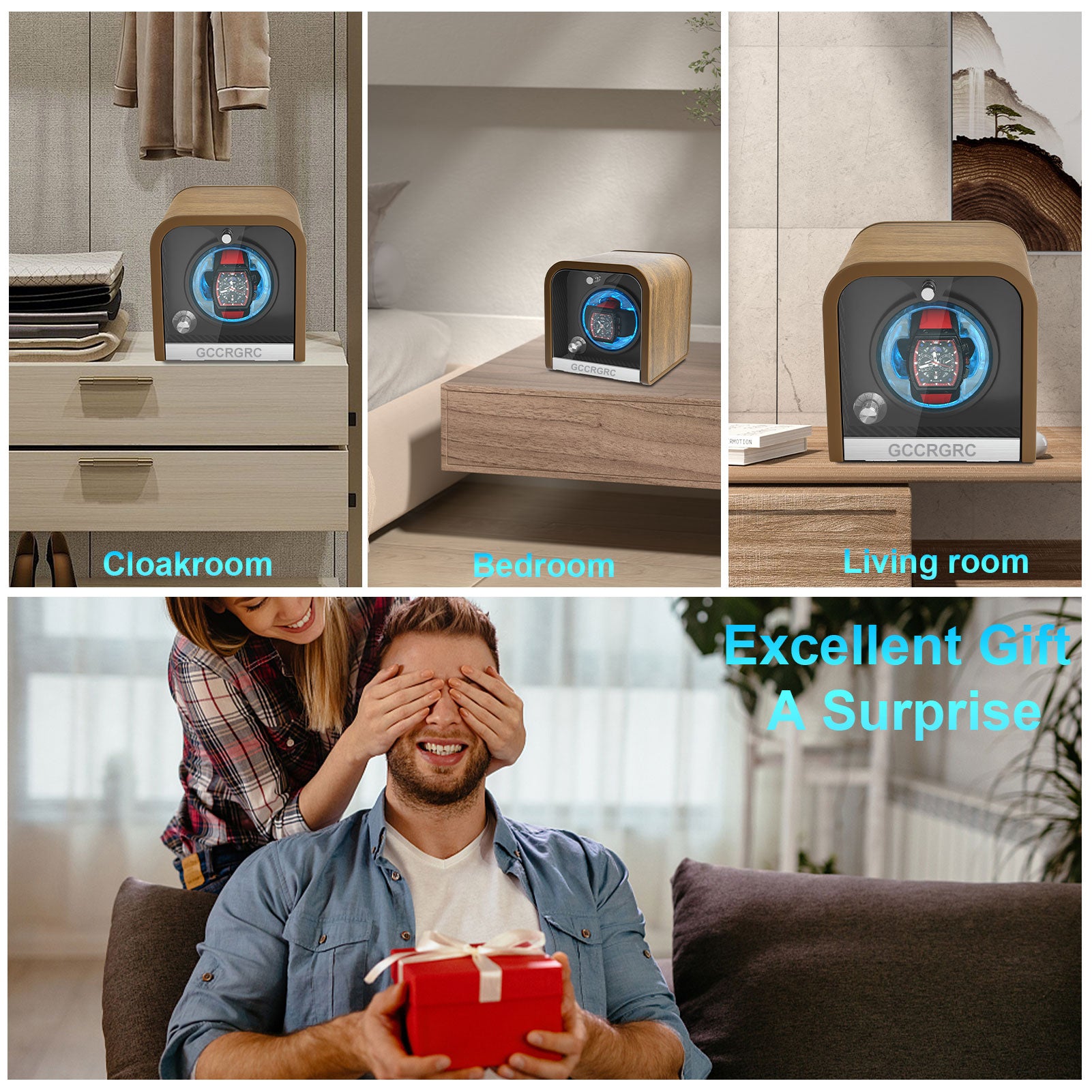 GCCRGRC-Single Watch Winder – Silent Motor Automatic Watch Rotator Box, Walnut Wood Finish